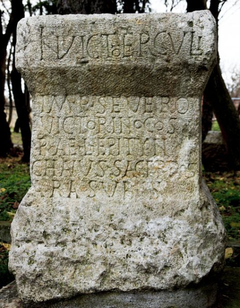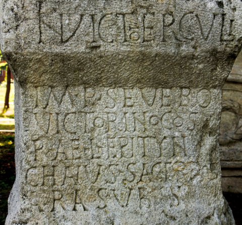 - Invicto (H)erculi // Imp(eratori) Severo / Victorino co(n)s(ulibus) / P(ublius) Ael(ius) Epityn/chanus sacerdos / ara sub s[(ua) c(ura) p(osuit)?]