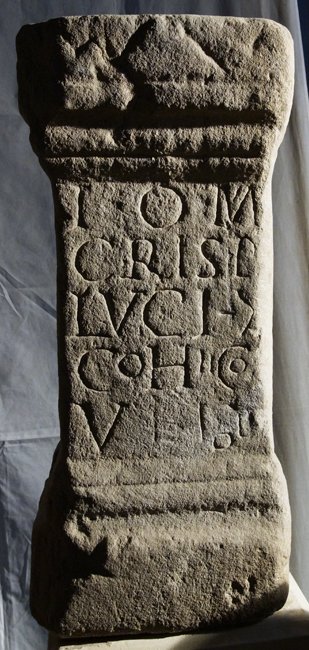 - I(ovi) O(ptimo) M(aximo) / Crisp(us) / Luci |(centurionis) / coh(ortis) II Co[m(magenorum)] / v(otum) solv(it)