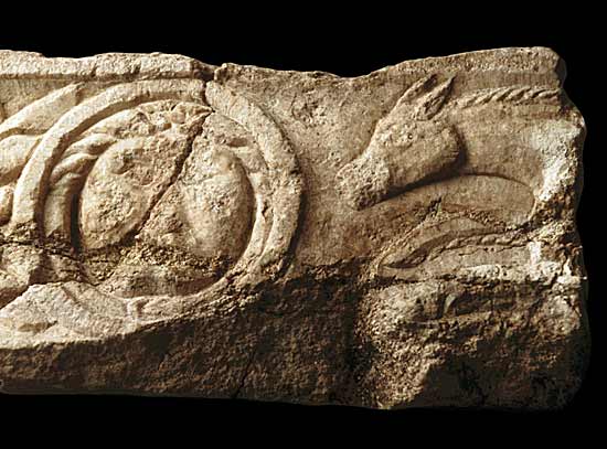 2092 Friesfragment mit Krater zwischen Greifen