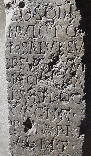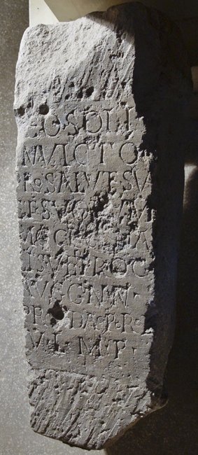 - [D]eo Soli / [I]nvicto / pro salute sua / et suorum / M(arcus) Cocc(eius) Genia/lis v(ir) e(gregius) proc(urator) / Augg(ustorum) nn(ostrorum) / prov(inciae) Dac(iae) Poro(lissensis) / v(otum) l(ibens) m(erito) p(osuit)