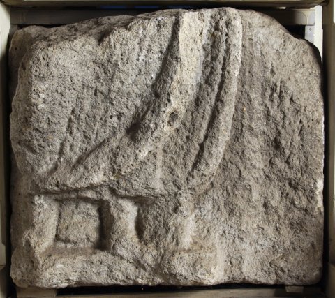 - nur Beinpartie erhalten, oben u. links abgebr., stark verwittert