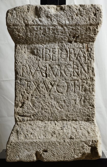 - Libero Patri / P(ublius) Val(erius) Macrin(us) / ex vot(o) p(osuit)
