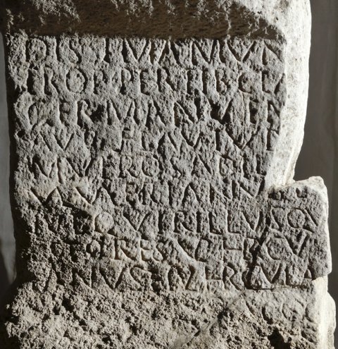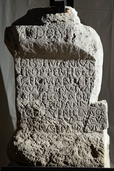 - Ordo spl[endi]/dissima(!) mun[ic(ipii)] / Trop(aei) per Tib(erium) Cla[ud(ium)] / Germanu(m) e[t] M(arcum) / Aur(elium) Flaviu(m) d[uu]/mveros(!) a(e)dile[s] / Val(erius) Valerianus e[t] / Iul(ius) Quirillus qu[a]/estores Ulp(ius) Hercu/lanus et Iul(ius) Hercula/[nus] s[crib]a Coc[ceius] / [po]s(uerunt)