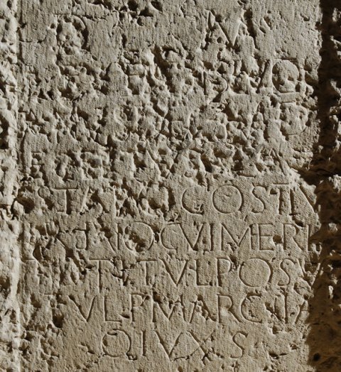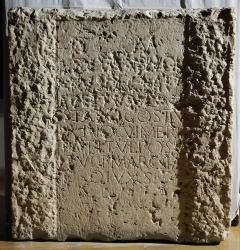 - D(is) M(anibus) / L(ucius)(?) Fufidi(u)s Luci/anus dec(urio) m(unicipii) d/eceptus a Ca/stabocos(!) IIv/ir(atu) suo cui meri/to titul(um) posu/it Ulp(ia) Marcia / co(n)iuxs(!)
