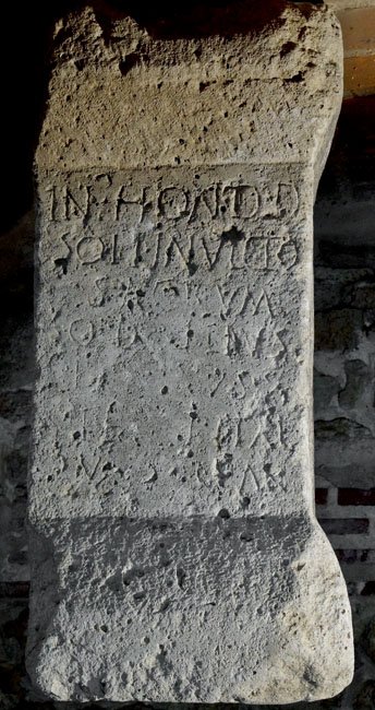 - In hon(orem) d(omus) d(ivinae) / Soli Invicto / sacrum / Q(uintus) Lucilius / Pis[ci]nus |(centurio) / leg(ionis) I Ital(icae) / v(otum) s(olvit) l(ibens) m(erito)