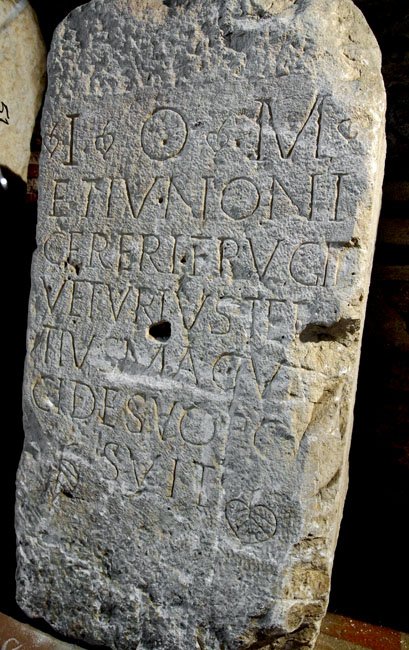 - I(ovi) O(ptimo) M(aximo) / et Iunoni / Cereri Frugif(erae) / Veturius Ter/tius mag(ister) v[i]/ci de suo po/suit