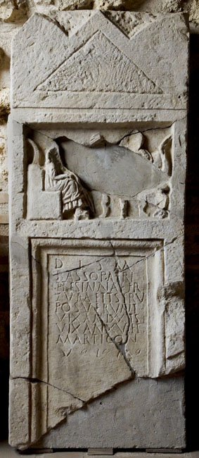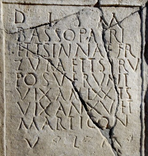 - Dis M(anibus) / Basso patri / et Tsinnae fr(atri) / Zura et Tsiru / posuerunt / vix(it) an(nos) LXX Ts(inna) / vix(it) an(nos) XV et / Marti(ae?) con(iugi?) / v(otum) l(ibens) m(erito)