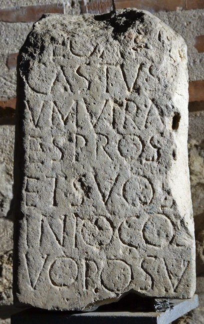 - Deo(?) Aet(erno)(?) / Castus [d(u)]/umvira[l]/es(!) pro se / et suos(!) [-]/inio co(n)s(ule) / vo(tum) posu(it)