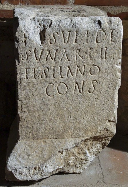 - [I(ovi) O(ptimo) M(aximo)] / [Iunoni] / [Reg(inae) pro sal(ute)] / [Imp(eratoris) M(arci) Aur(eli)] / [Commodi] / [------] / posuit de / su(o) N(onis) A(p)r(ilibus) F(usciano) II / et Silano / cons(ulibus)