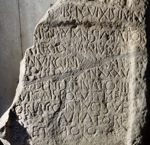 - Tunc vixi bene vixi sine nu/lla crimina vix(i) resta viator / Acril(la) Trygitiani vixit / convirginio ann(os) XII et / moritur ann(os) XXXV / et demisit natos III / Aur(elius) Gai(u)s posuit mem/oria coniugi su(a)e / resta viator l/ege titolo