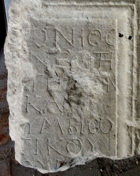 Ἀπολ[λ]ώνιος / Δάδα[ς ἀ]νέστη/σε τὴν [σ]τή[λη]ν / ἑαυτ[ῷ] καὶ / [τ]ῇ ἰδί[ᾳ σ]υμβίῳ / Ζου[νῃ? Ἀτ]τικοῦ / Θ̣Ι̣Α̣Τ̣[---] θ̣υ̣γ̣[ατρὶ] / [------]