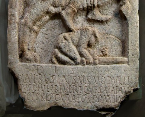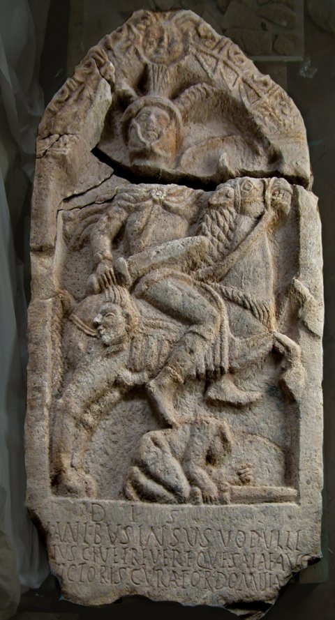 - Dis / Manibus Insus Vodulli / [fil]ius cive(s) Trever eques alae Aug(ustae) / [t(urma)] Victoris curator Domitia[---