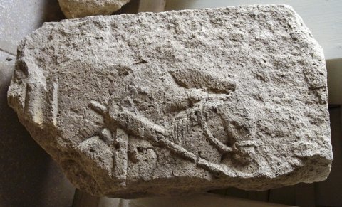 - unten abgebr., Rahmen bis auf kleinen Rest abgebr., Relief tlw. abgeschlagen