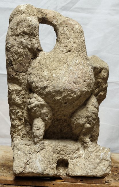 - zerbrochen, linker Flügel u. Sockel tlw. abgebr.