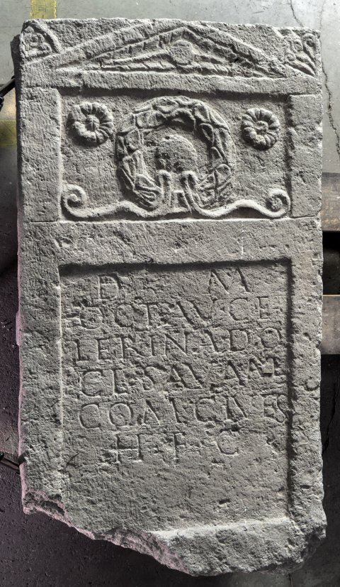 - D(is) M(anibus) / Octav(iae) Ce/lerinae do(mo) / Cl(audia) Sava(ria) Aul(us) / Com(inius?) Cives / h(eres) f(aciendum) c(uravit)