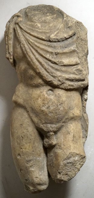 - Mythische Figur: stehender Mercur mit Mantel um Schultern und linken Arm.