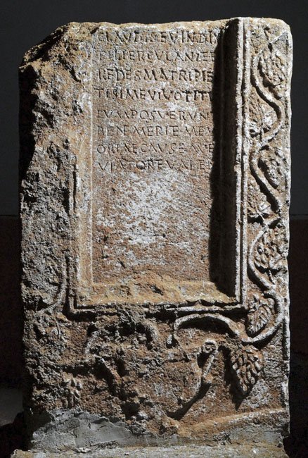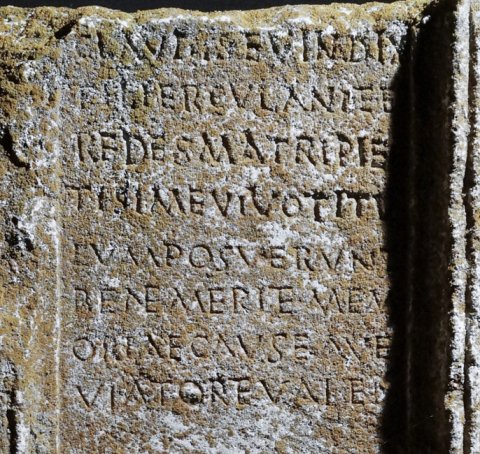 - ---] / Claudi(u)s et Vindix(!) fili (H)erculani et (h)e/redes matri pien/tis(s)im(a)e vivo titu/lum posuerunt / bene merit(a)e mem/oriae caus(a)e ave /viator et vale