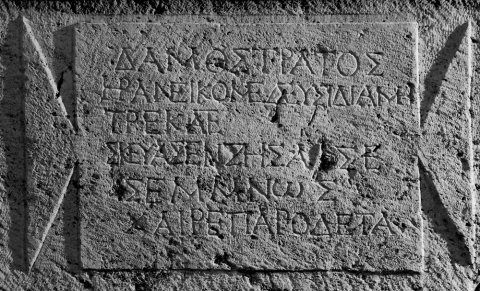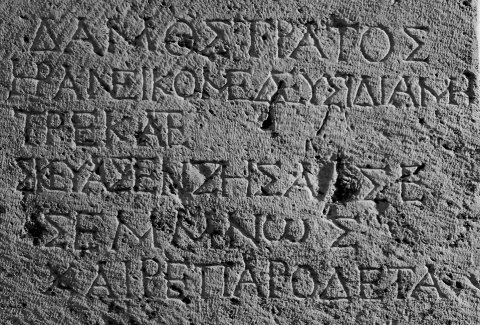 Δαμόστρατος / Ἡρᾶ Νεικομεδεὺς ἰδίᾳ μη/τρὲ κατε/σκεύασεν ζησάσε / σεμμνῶς / χαῖρε παροδε̑τα