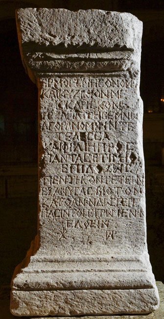 Ἑρμογένης ὄνομ’ ἦν̣/ καὶ Κυζίκιόν με / κίκλησκον· / ἤρξα πάτρῃ σεμνῶς̣/ ἀγορανομίην τ’ ἐ/τέλεσσα· / καὶ φιλίῃ πρὸς / πάντας ἐτιμήθη / ἐπιδόξως· /
