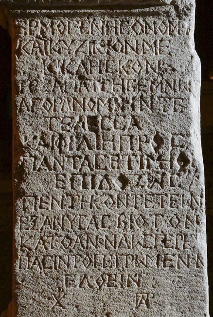 πεντήκοντ’ ἐτέων / ἐξανύσας βίοτον / κάτθανον δ’ ὥσπερ ἔχ[ει] / πᾶσιν τὸ πεπρωμένον / ἐλθεῖν. / χαῖ(ρε) παρ(οδεῖτα).