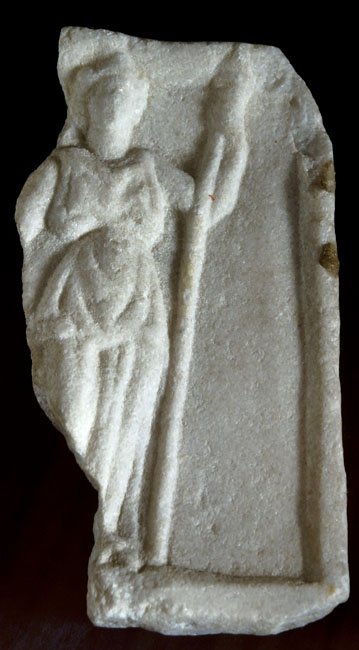 - Mythische Figur : stehende Minerva im langen Chiton, mit Lanze und Helm.