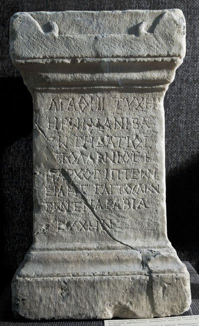 ἀγαθῆι τύχηι/ἥρωι Μανιβά/ζῳ Σηδάτιος / [Ἀ]πολλώνιος ἔ/παρχος ἱππέων /