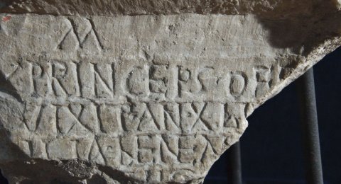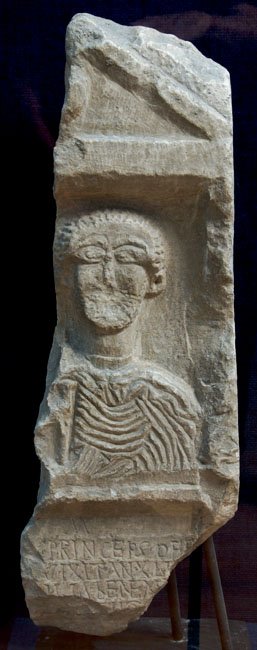 - D(is) M(anibus) / Val(erius) Felix princeps offi/ci(i) pr(a)esidis vixit an(nos) XLV / Aurel(ia) Aemilia bene meri/to conpari(!) virginio posuit / vale viator / griechisch: Οὐαλ(έριος) Φήλιξ πρίνκιψ ὀφηκίου {ὀφικίου} / ἡγεμόνος ζήσας ἔτη μεʹ / Αὐρελ(ία) Ἐμιλία τῷ ἀειμνήστῳ / ἀνδρὶ παρθενικῷ τὴν στήλην ἀν[έ]/θηκεν· χαῖρε παροδεῖτα