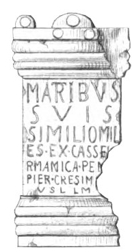 - Matribus / suis / Similio mil/es ex c(l)asse Ge/rmanica P(ia) F(ideli) D(omitiana) / pler(omate) Cresimi / v(otum) s(olvit) l(ibens) l(aetus) m(erito)