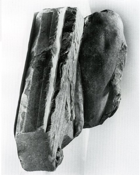 - Zwei anpassende Fragmente einer massiven Platte. Die Reliefdarstellung nur zum Teil erhalten. Die Oberfläche vorzüglich erhalten und nur teilweise versintert.
