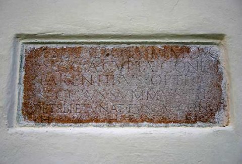 - an der Südseite der Kirche hoch oben eingemauert