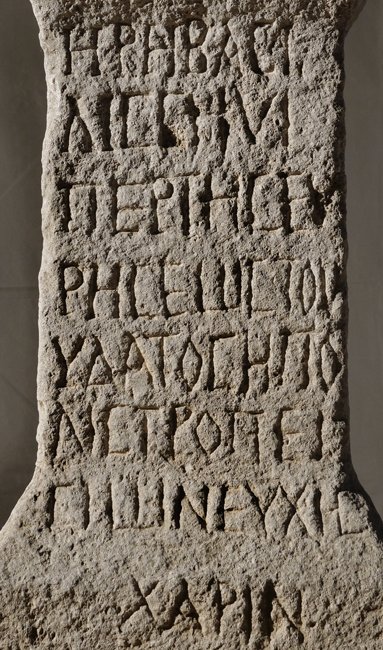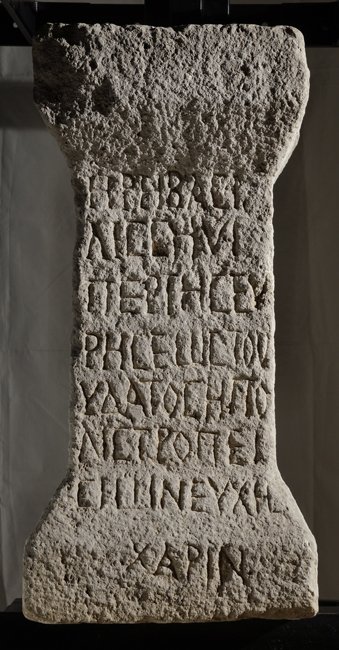 Ἥρῃ βασι/λισσῃ ὑ/πὲρ τῆς εὑ/ρήσεως τοῦ / ὕδατος ἡ πό/λις Τροπει/σίων εὐχῆς / χάριν.
