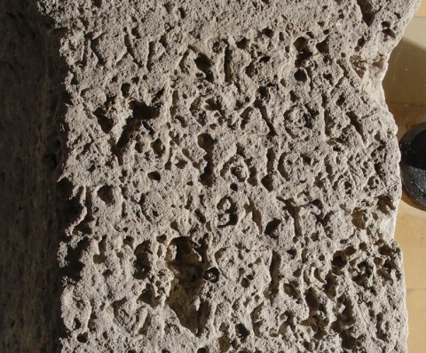 - linke untere Ecke abgebr., löchrige Oberfläche
