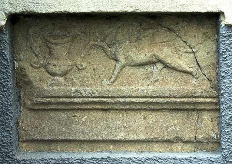 2134 Gebälkfragment mit Krater zwischen Greifen