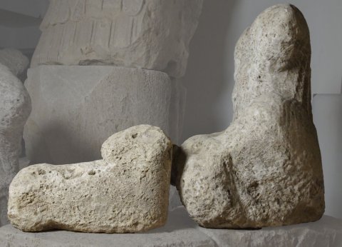 - Auf dem Boden sitzende Dakerin. Teil einer Gruppe von vermutlich sechs Kolossalstatuen gefangener Daker, die um das große Tropaion auf der Spitze des Tropaeum Traiani aufgestellt waren.