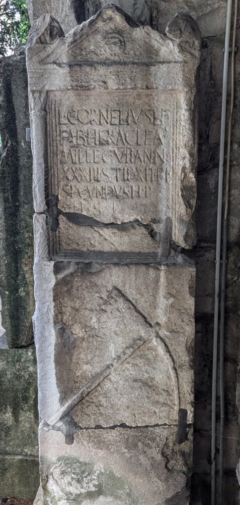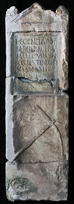 - L(ucius) Cornelius L(uci) f(ilius) / Fab(ia) Heraclea / mil(es) leg(ionis) VII ann(orum) / XXXIII stip(endiorum) XII t(estamento) f(ieri) i(ussit) / Secundus h(eres) p(osuit) / h(ic) s(itus) e(st)