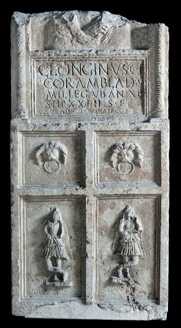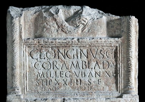 - C(aius) Longin(i)us C(ai) f(ilius) / Cor(nelia) Amblada / mil(es) leg(ionis) VII an(norum) XL / stip(endiorum) XXI h(ic) s(itus) e(st) / frater fratri