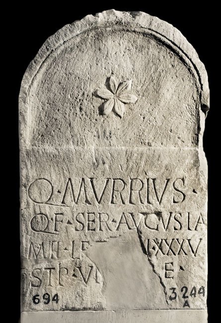 - Q(uintus) Murrius / Q(uinti) f(ilius) Ser(gia) Augusta / mil(es) le[g(ionis) VII an]n(orum) XXXV / stip(endiorum) VI[--- h(ic) s(itus)] e(st)
