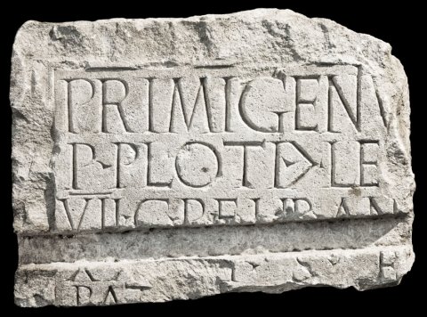 - Primigeniu[s] / P(ubli) Ploti |(centurionis) le[g(ionis)] / VII C(laudiae) p(iae) f(idelis) lib(ertus) an[n(orum)] / XX[---]I(?) s(ibi) e[t] / pat[---] / [---