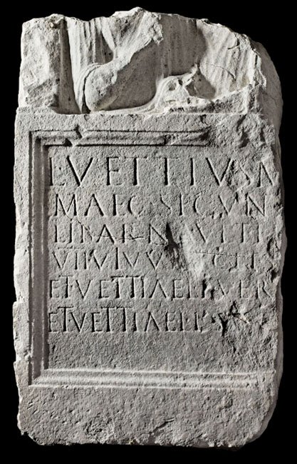 - L(ucius) Vettius M(arci) [f(ilius)] / Maec(ia) Secun[dus] / Libarn[a] vet(eranus) le[g(ionis)] / VII vivus [f]ecit s[ibi] / et Vettiae L(uci) f(iliae) Ver[ae] / et Vettiae L(uci) l(ibertae) S[---]
