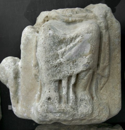 - Mythische Figur: thronende Kybele, an der rechten Thronlehne Löwe.