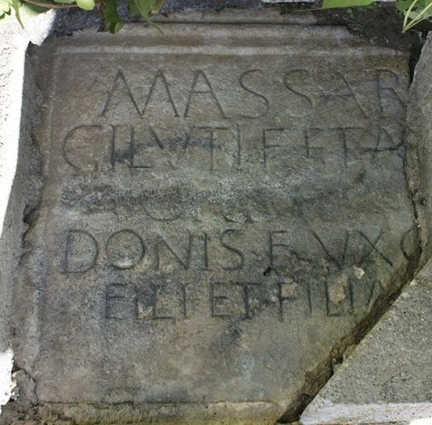Massar[---] / Giluti f(ilio) et A[---]/o[---] [[---]]/donis f(iliae) uxo[ri] / fili(i) et filia[e v(ivi) f(ecerunt)]