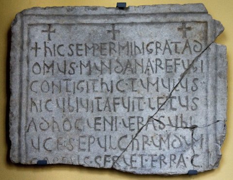 - Hic semper mihi grata domus mundana refugi / contigit hic tumulus ubi vita fuit / l(a)etus ad hoc veni vera sub luce sepulc{h}rum / dum corpus servet terra c/[---
