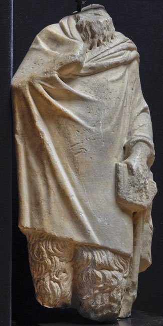 - Mythische Figur, Musikinstrument: stehender Pan im Mantel, in der Linken Syrinx.