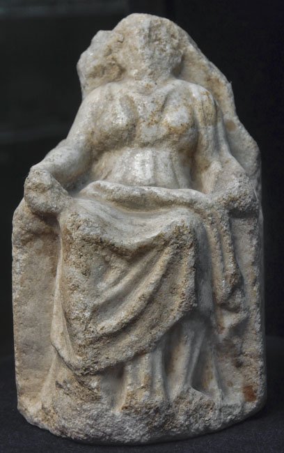 - Mythische Figur: thronende Kybele mit Schale (patera) in der Rechten.