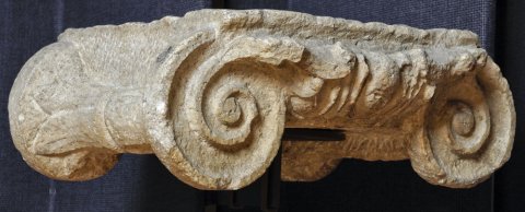 - jonisches Kapitell, geschnürte pulvini mit Blattdekor, Zwickelpalmtten
