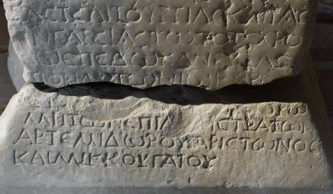 [Αὐτοκράτορι Καίσα]/[ρι Τίτῳ Αἰλίῳ Ἁδρι]/[ανῷ Ἀντωνείνῳ Εὐσε]/[βεῖ Σεβαστῷ εὐεργέ]/[τῃ κ]αὶ σωτῆρι τῆ[ς κώ]/[μη]ς. ἔντευξις τῷ κρ[α]/