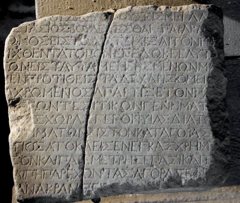---] / [---]ΟΙΣΑ․ΛΟ․ΟΥΣ εἰς μεγαλ[---] / [--- ἀποκατα]στάσιος βουλεύεσθαι· παρακλ[η]/[θεὶς ὁ δεῖνα ---ωνος εἰς τὸ διατειχίξαι τὸν π[α---] / [--- ἀποδε]ιχθέντα τόπον, ἐπέδωκε ἑαυτ[ὸν] / [---] τῶν εἰς ταῦτα μεμερισμένων με[ρι]/[στῶν ---] μεν προτιθεὶς τάδε χαριζόμεν[ος] / [τῶι δάμωι· δαπάναις εἰς] ἃ χρώμενος ἀπάρτιξε τὸν πα[---] / [--- τόπον· ---]έων τε σιτικῶν γενημάτ[ων] /