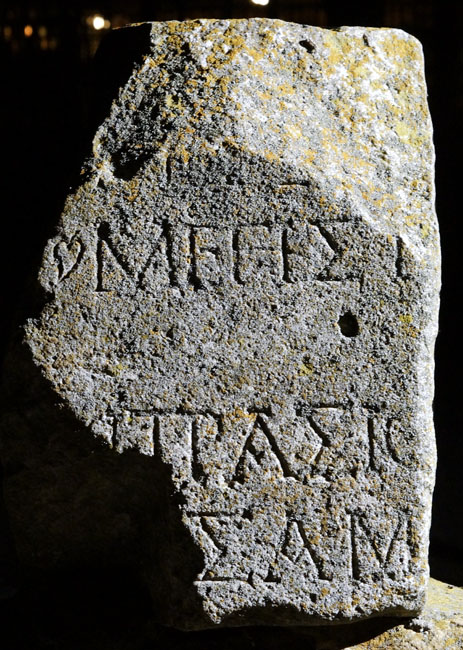 21786 Block mit griechischer und lateinischer Inschrift