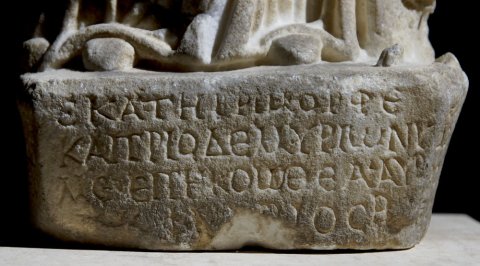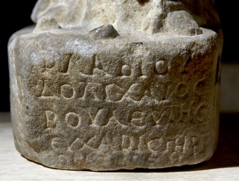 - Λαμπαδηφόρε {κ} / κ̣αὶ νυκτοφανῆ, δεί/[μ?]ου̣ ὀ̣πάδ', ἀφαν/[τ- ---]ε, // Ἑκάτη τρίμορφε / καὶ τρίοδε, μυριώνυ/με. ἐπηκόῳ θεᾷ Αὐρ(ήλιος) / Φλά̣β̣ιος {βʹ} // Φλαβίου / Δολιχαῖος / βουλευτὴς / εὐχαριστήρι/ον ἀ̣νέθ(ηκε). (Lesung von Nicolay Sharankov)
