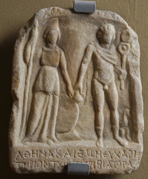 ἀγαθῇ τύχῃ. // Ἀθηνᾷ καὶ Ἑ<ρ>μῇ εὐχαρισ/τήριον τῶν περὶ Βιάτορα